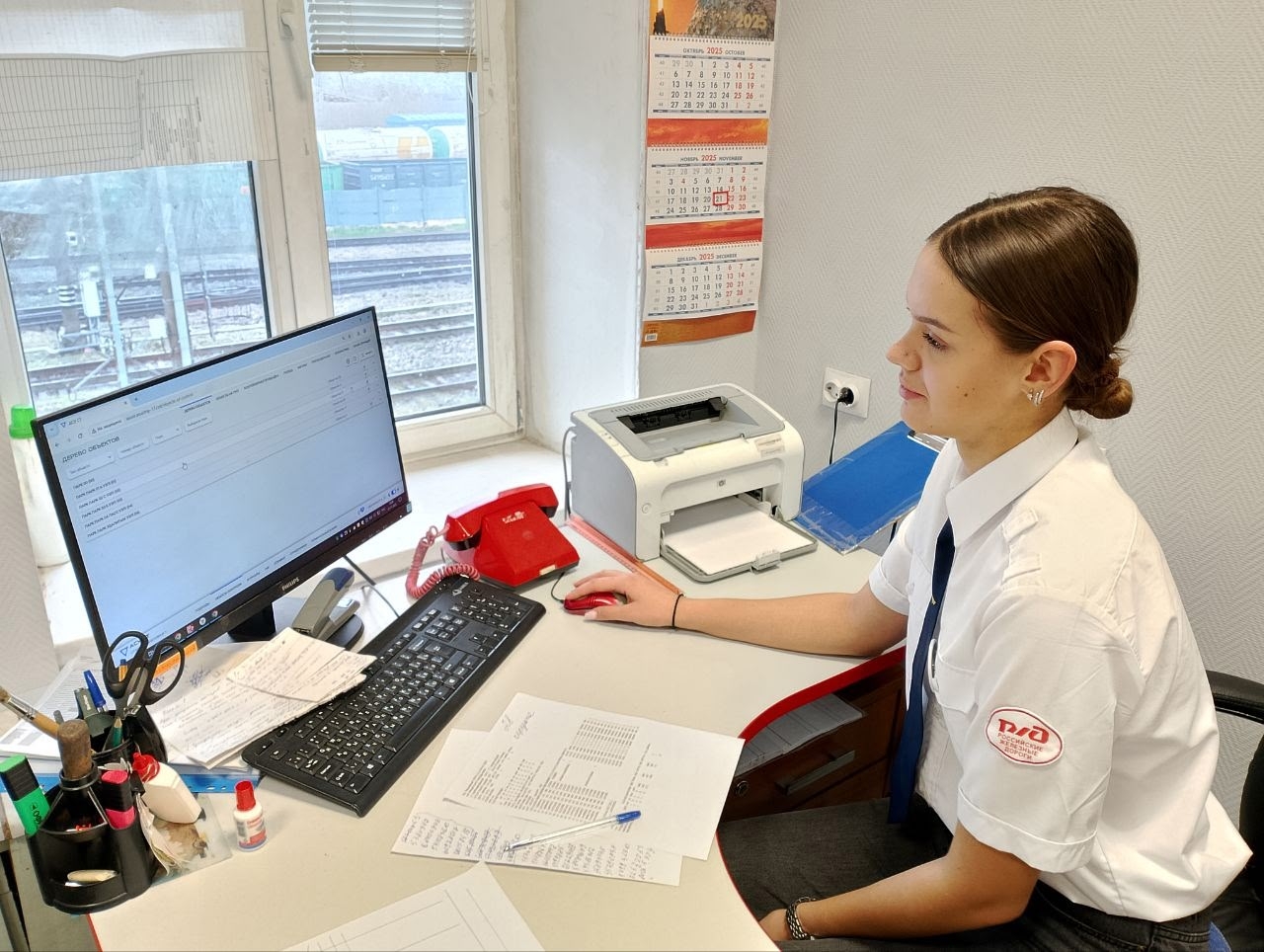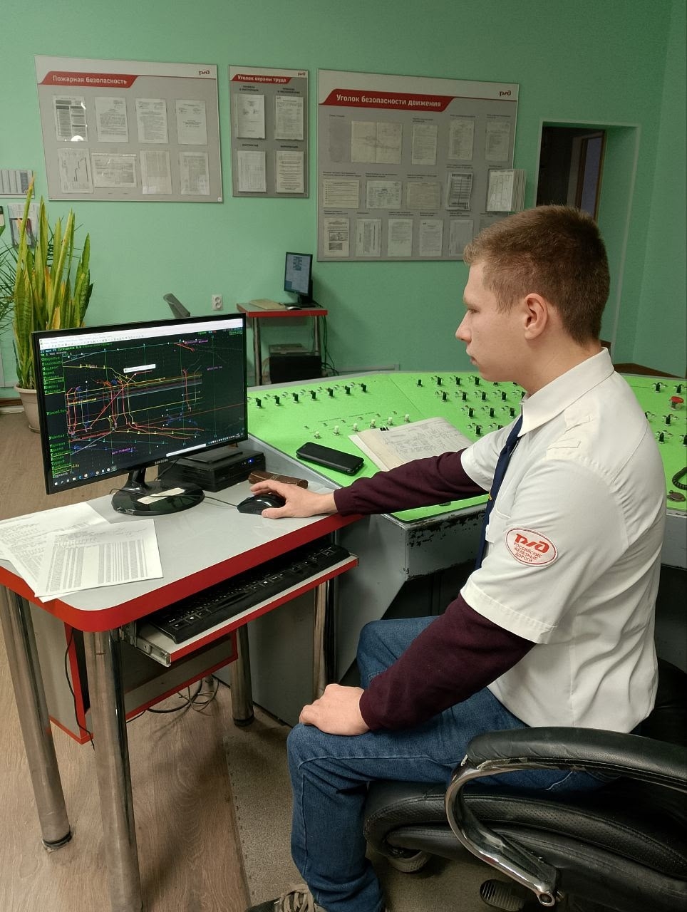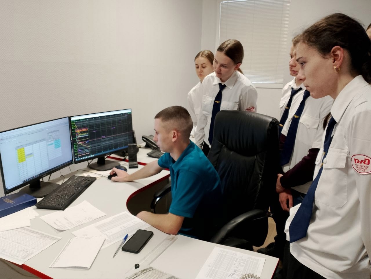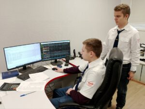 Следующим этапом стала работа в автоматизированных комплексах, используемых на рабочих местах ДСЦ и в технической конторе. Студенты получили возможность самостоятельно выполнить задания в ключевых системах, обеспечивающих движение поездов и оформление документов, среди которых:
