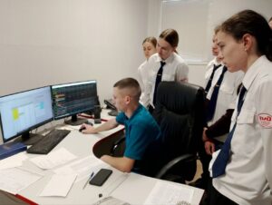 Занятие началось с посещения поста электрической централизации и рабочего места дежурного по станции. Здесь студенты смогли на практике отработать приготовление маршрутов приема, отправления и проследования поездов с применением системы БМРЦ. Участники познакомились с реальными алгоритмами управления движением и взаимодействием устройств железнодорожной автоматики.