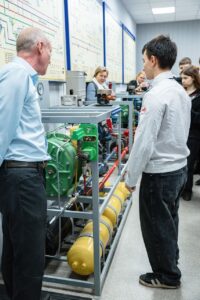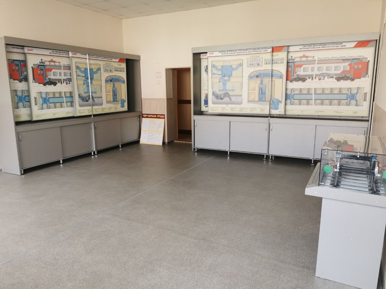 Дополнительно учебное пространство оборудовано макетами с электрическими схемами тормозной магистрали электроподвижного состава. Работа с такими наглядными моделями помогает студентам глубже понять принципы функционирования тормозных систем, освоить порядок диагностики и выявления неисправностей, а также закрепить теоретические знания на практике.