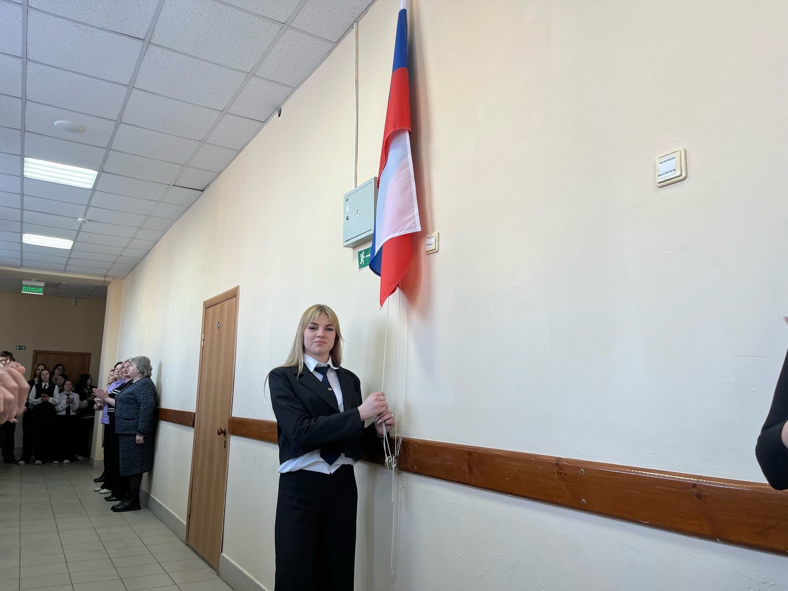 Право поднять государственный флаг было предоставлено студентке второго курса специальности «Организация перевозок и управление на транспорте» Вере Новиковой.