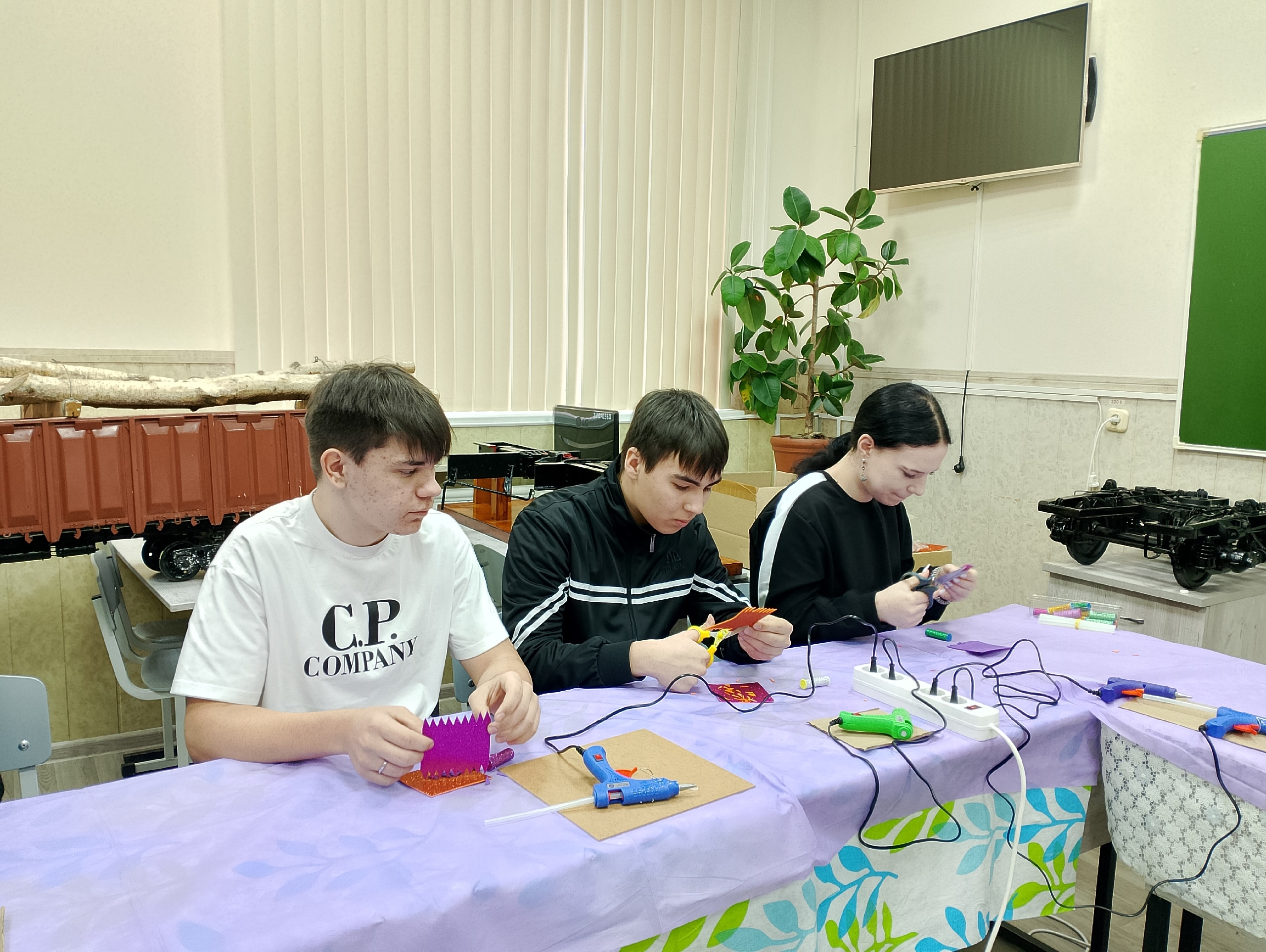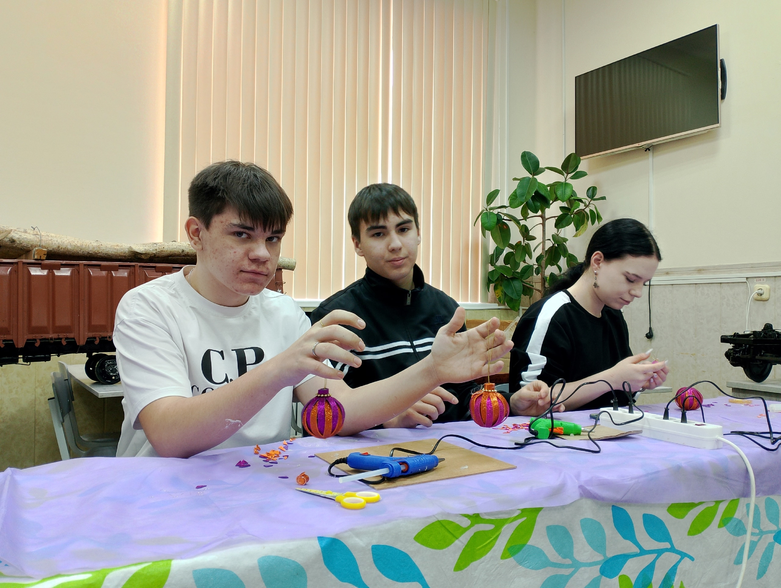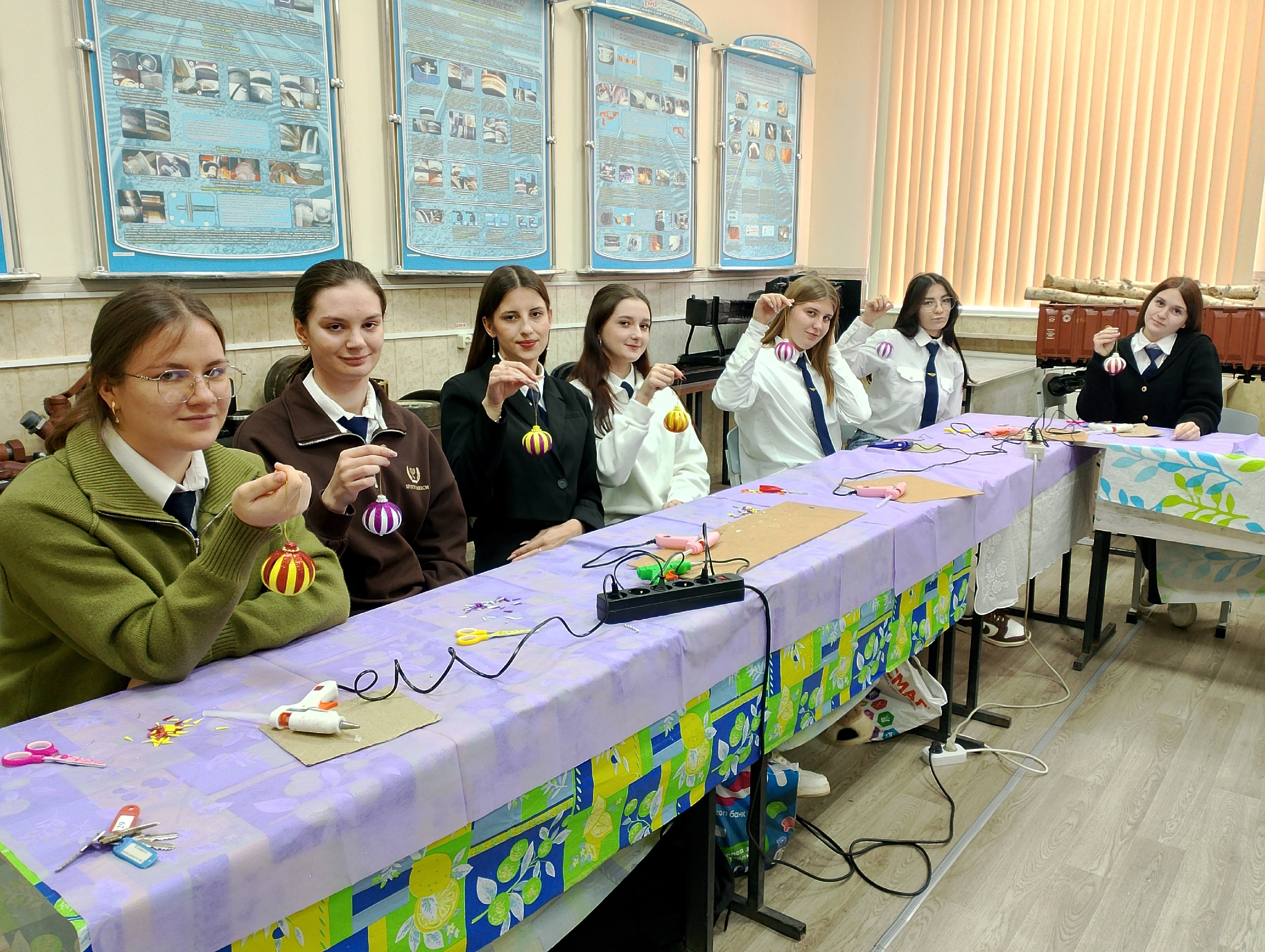 16 декабря 2025 года в рамках профориентационной работы и развития социального партнёрства в Узловском железнодорожном техникуме — филиале ПГУПС — состоялся мастер-класс по изготовлению новогодних ёлочных игрушек в технике моделирования из фоамирана «Ёлочные игрушки своими руками». Участниками мероприятия стали студенты техникума и учащиеся 9 классов МБОУ СОШ № 59 города Узловая.