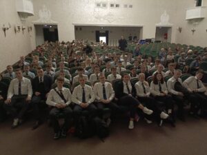 21 октября 2025 года студенты Узловского железнодорожного техникума – филиала ПГУПС посетили поэтический спектакль «Василий Тёркин» по мотивам одноимённой поэмы Александра Твардовского. Постановку представил Молодёжный театр на сцене ДК Машиностроителей.