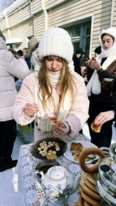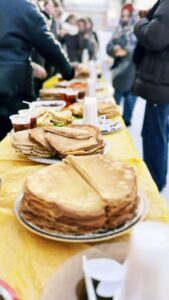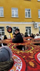 Кульминацией праздника стал большой стол с ароматными блинами — главным символом Масленицы. Традиционные угощения, задорная музыка и народные пляски создали по-настоящему праздничное настроение и объединили всех присутствующих.