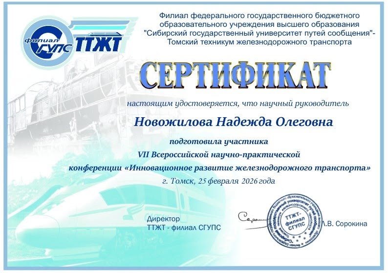 Участие студентов в научно-практических конференциях способствует развитию исследовательских навыков, расширению профессиональных знаний и формированию интереса к научной деятельности в сфере железнодорожного транспорта.