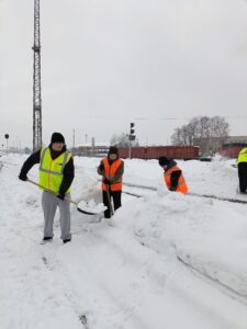 Весело, активно и главное — с пользой прошла практическая помощь студентов Узловского железнодорожного техникума — филиала Петербургский государственный университет путей сообщения императора Александра I железнодорожникам в борьбе со снежными заносами.
