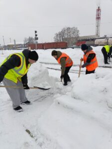 Снегоборьба — исключительно железнодорожный термин, обозначающий комплекс мероприятий по предотвращению и ликвидации снежных заносов на объектах железнодорожной инфраструктуры. С азартом и энтузиазмом студенты вышли на пути станции Станция Узловая I, чтобы оказать посильную помощь в борьбе со стихией.