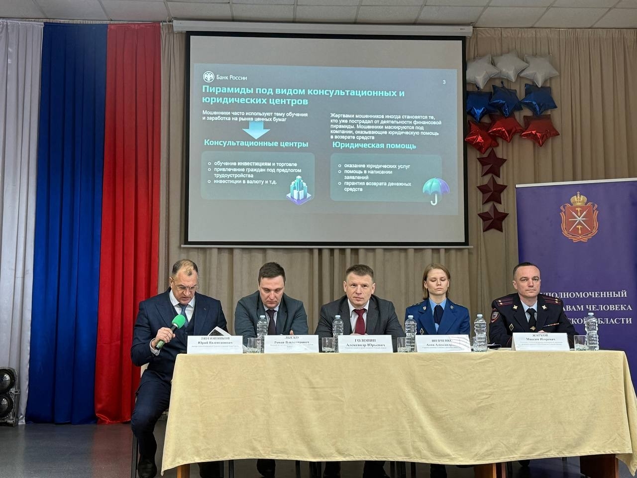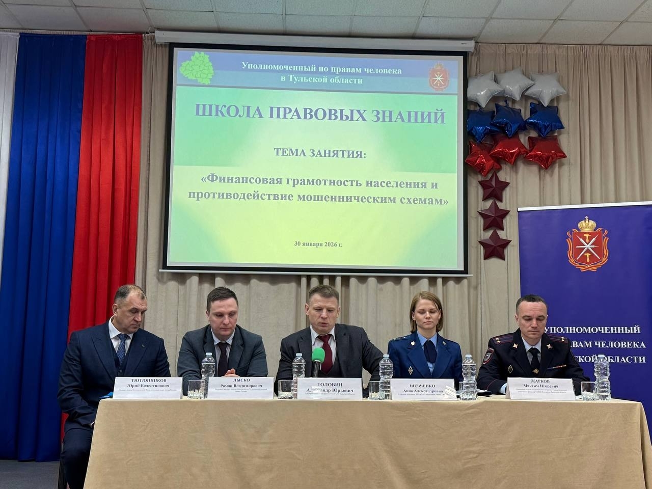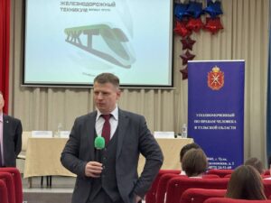 С приветственным словом и в формате доверительного общения к студентам обратился Уполномоченный по правам человека в Тульской области Александр Юрьевич Головин. Он подчеркнул важность правовой осведомлённости, умения защищать свои права и ответственного отношения к финансовым решениям.