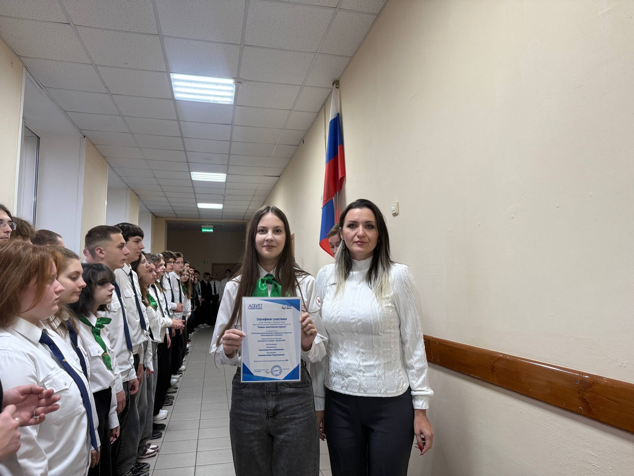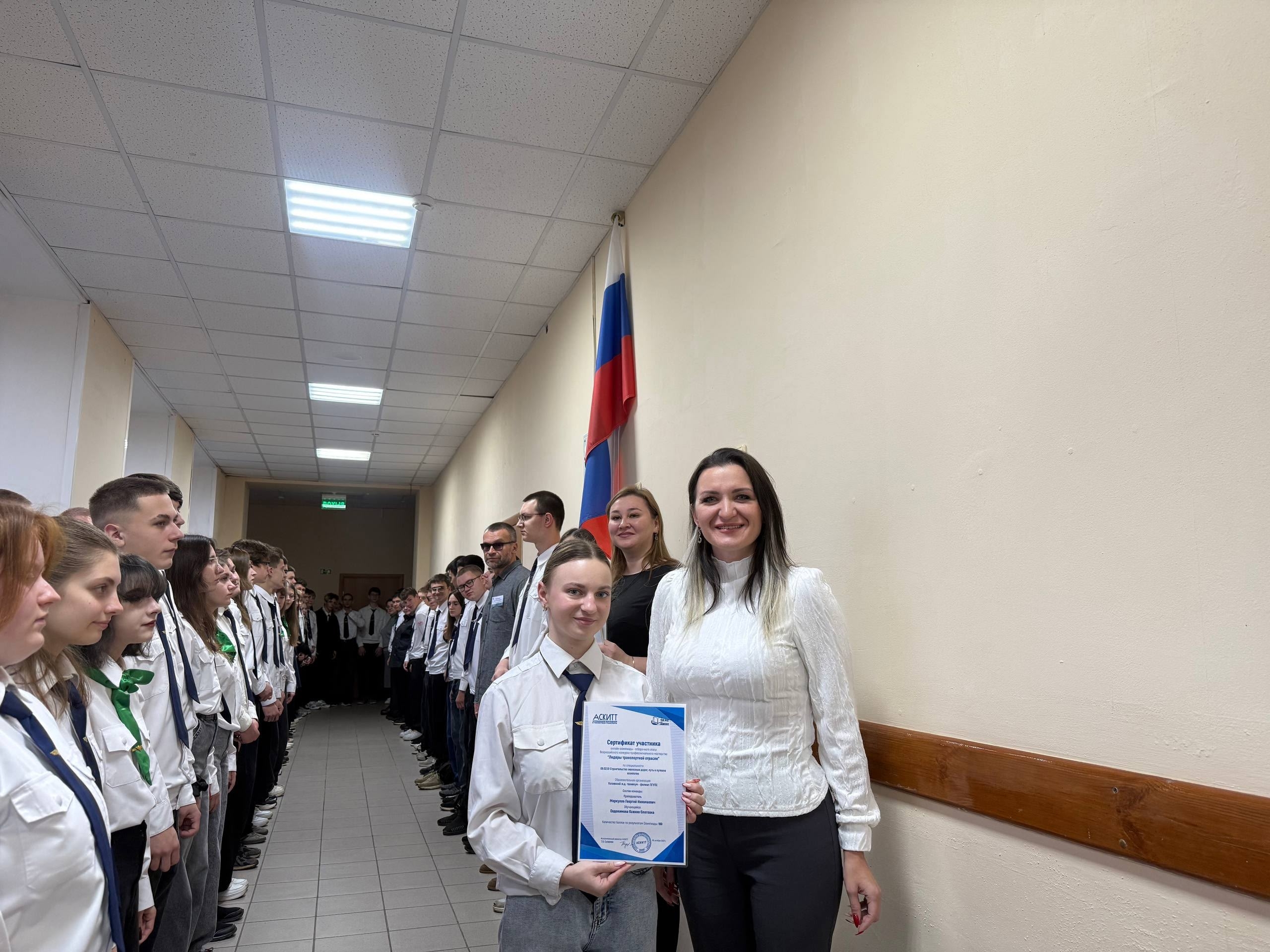Директор филиала Ольга Анатольевна Титус вручила сертификаты участникам онлайн-олимпиады «Лидеры транспортной отрасли», отметив их активность и стремление к профессиональному развитию.