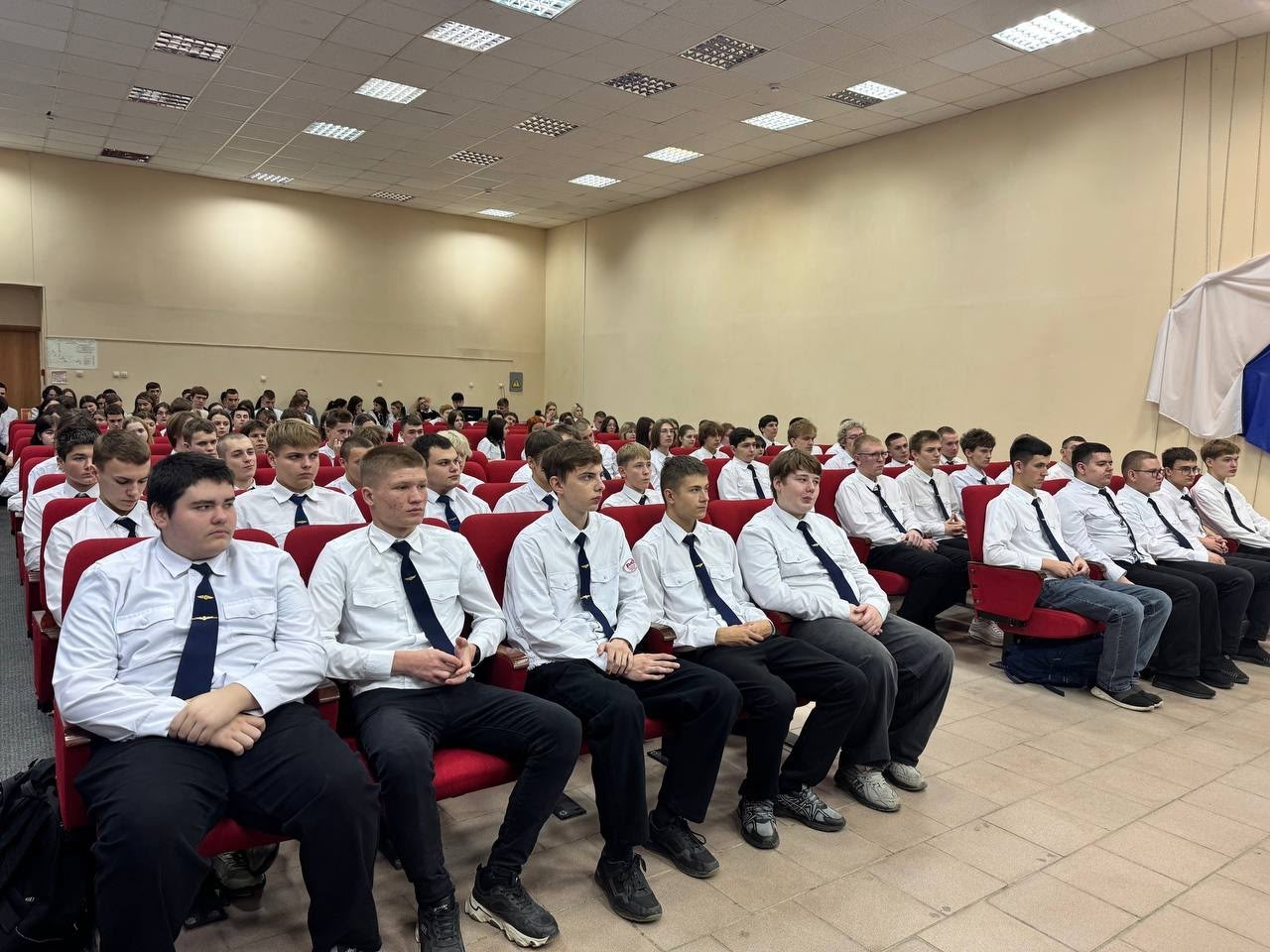 Общий классный час в актовом зале для студентов второго и третьего курсов подготовил и провел преподаватель В. Н. Вишкин.