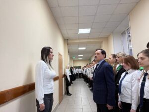 После торжественной части обучающиеся ознакомились с планом мероприятий на неделю и отправились на классные часы. Темой этой недели стало «Поступление в учебные заведения Министерства обороны РФ. Быть офицером Вооруженных Сил Российской Федерации – высокая честь».