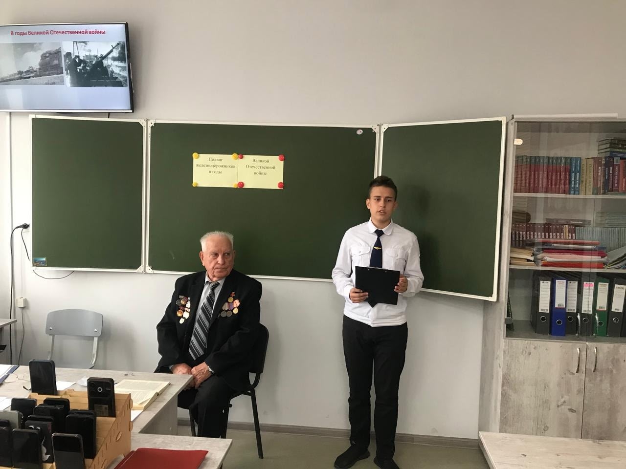 Студенты Попов Николай и Мустафаев Даниил подготовили сообщения о трудной, поистине героической работе железнодорожников, которым приходилось трудиться в условиях полной светомаскировки, под постоянными бомбёжками вражеской авиации. Они рассказали о мужестве машинистов Внукова С. М., Кондаурова Ф. И., Ксюнина Г. И., которые самоотверженно выполняли трудовые задания, ежедневно рискуя жизнью, как и многие другие работники железной дороги.