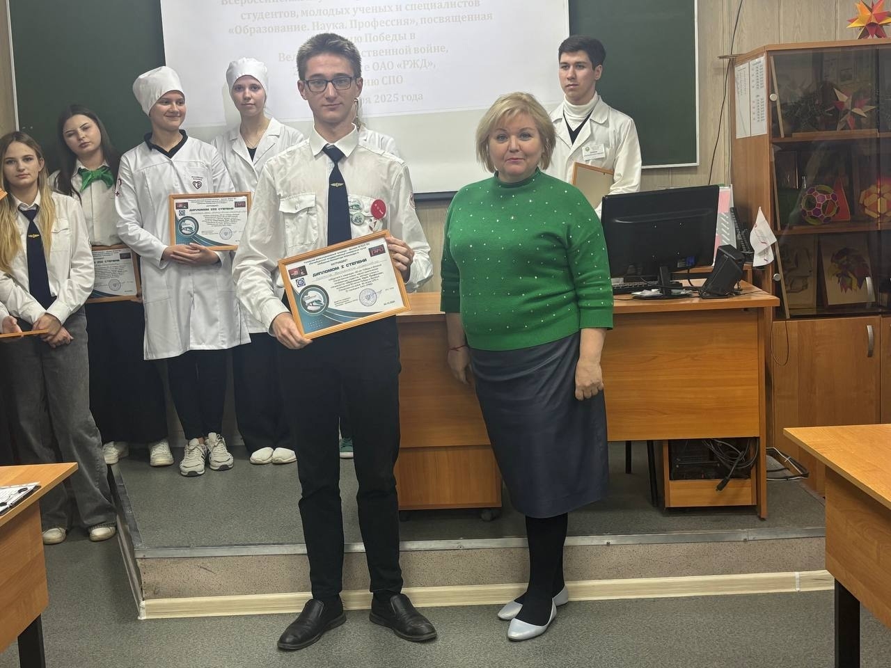 4 декабря 2025 года в Узловском железнодорожном техникуме – филиале ПГУПС состоялась Всероссийская научно-практическая конференция студентов, молодых ученых и специалистов «Образование. Наука. Профессия». Мероприятие было приурочено к 80-летию Победы в Великой Отечественной войне, 85-летию среднего профессионального образования в России и 22-й годовщине со дня образования ОАО «РЖД».