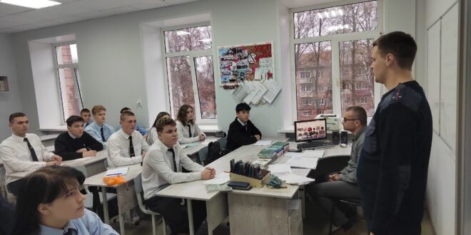 Сегодня для студентов первого курса Узловского железнодорожного техникума — филиала ПГУПС состоялась встреча с инспектором по делам несовершеннолетних Ильёй Алексеевичем Васильевым.